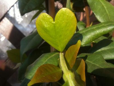 Bizzarra foglia del mio gelsomino. Si differenzia da tutte le altre sue vicine che invece hanno una forma appuntita.