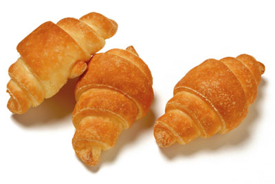 Cospargere le fettine triangolari con vari tipi di patè, arrotolarle su loro stesse partendo dalla parte esterna; fermare la punta del triangolo con una goccia di latte di soia e spennellare i cornetti con il restante latte, cospargere di semi di cumino e cuocere in forno per 15 minuti a 180°.