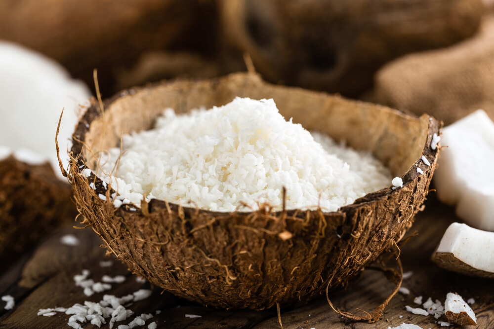 In una ciotola capiente inserire tutte le polveri e mescolarle bene con un cucchiaio di legno, aggiungere l'olio e poi il latte sempre mescolando; aggiungere anche il cocco e il riso soffiato.
