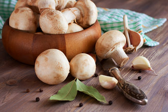 Saltare i funghi tagliati a fettine in padella con 1 cucchiaio di olio, sale e le spezie per 5 minuti. In una ciotola unire la farina al lievito e sale, mescolare bene. Aggiungere 2 cucchiai di olio, funghi e acqua fino a ottenere un impasto piuttosto cremoso. Riempire le formine per muffin fino a metà altezza. Cuocere in forno a 180° per 30 minuti.
