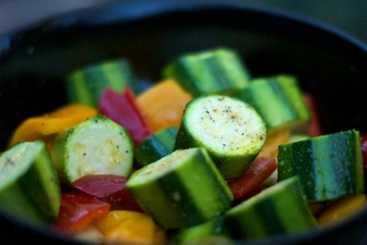 Tagliate a dadini zucchina, peperone e pomodori, cospargeteli di sale e lasciate riposare trenta minuti.
