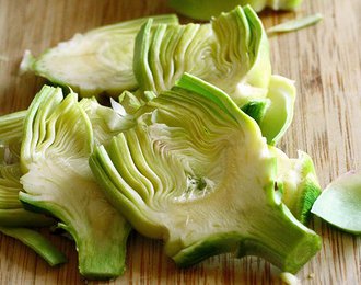 Lavare i carciofi dopo aver eliminato le foglie esterne più dure ed il fieno interno. Tagliarli a fette sottili, farli cuocere per circa 10 minuti in una padella con olio e uno spicchio d'aglio. Aggiungere una confezione di panna di soia da cucina, salare, pepare e far cuocere a fuoco basso per altri 5 minuti. Far raffreddare i carciofi, stendere la pasta sfoglia in una teglia da forno, bucherellare il fondo con la forchetta, riempire con il composto e cuocere in forno a 200° per 15-20 minuti.
