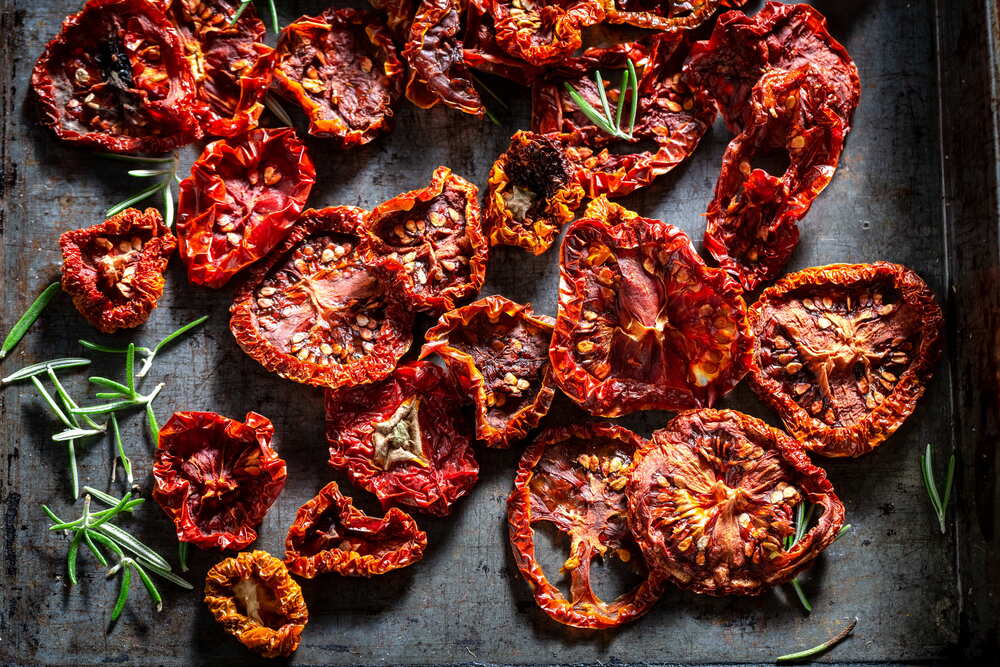 Mettere a bollire l'acqua per la pasta e nel frattempo preparare un trito con la rucola fresca e i pomodori secchi. Aggiungervi il rosmarino, un pizzico di sale ed un paio di cucchiai d'olio. Lasciar riposare in frigorifero. Buttare la pasta, farla cuocere al dente, scolare tenendo da parte un po' d'acqua di cottura. Unire la pasta agli ingredienti ed aggiustare con l'acqua di cottura per rendere più morbido il 'sugo'. Servrire calda, oppure, raffreddando la pasta sotto l'acqua corrente prima di mescolarla al sugo, si puo' preparare un'ottima pasta fredda, molto saporita.