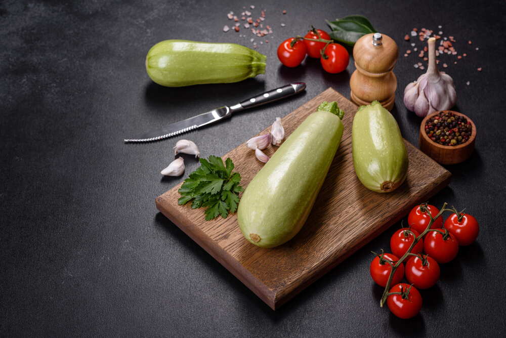 Lessare le zucchine intere. Mettere a bollire una pentola con abbondante acqua per cuocere la pasta. Nell'attesa, frullare le zucchine lessate con poca acqua di cottura, assieme alle foglioline di basilico, aggiungendo anche l'olio, le mandorle e sale a piacere, fino a creare un crema morbida (aggiungere se necessario altra acqua di cottura delle zucchine). Aggiungere il succo di limone e rifrullare il tutto per qualche secondo. Tagliare a pezzi piccoli i pomodorini (vanno bene anche pomodori normali).